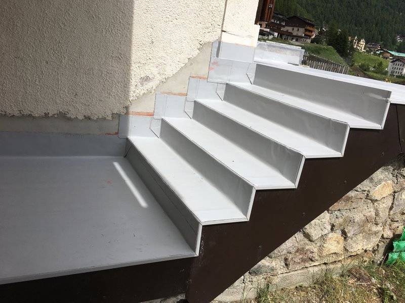 Su terrazze e balconi, la guaina impermeabilizzante PVC / FPO, inclusi lo strato divisorio e di protezione, vengono solamente appoggiati.